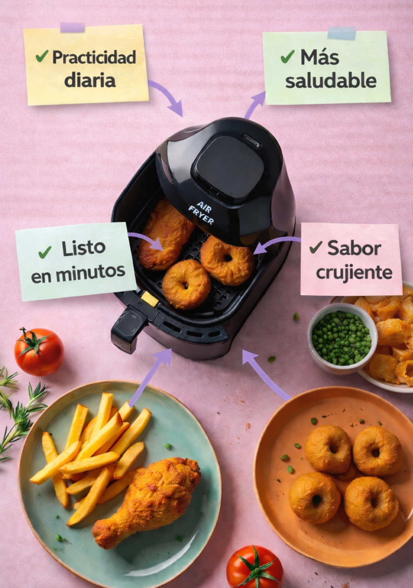 Descubre cómo transformar tu AirFryer en una máquina de crear platos rápidos, saludables y deliciosos en pocos minutos, aun con una rutina llena y poco tiempo para cocinar.